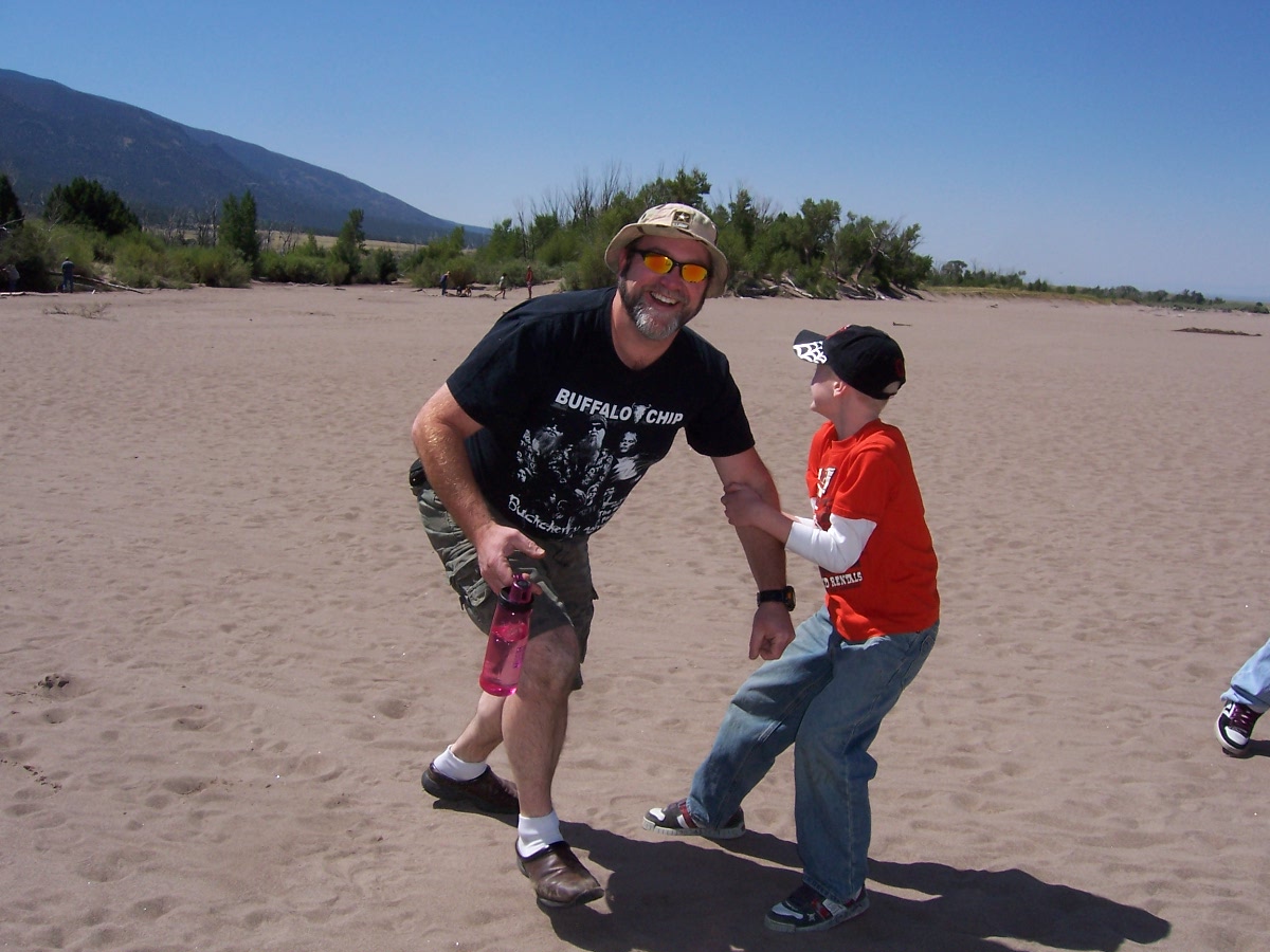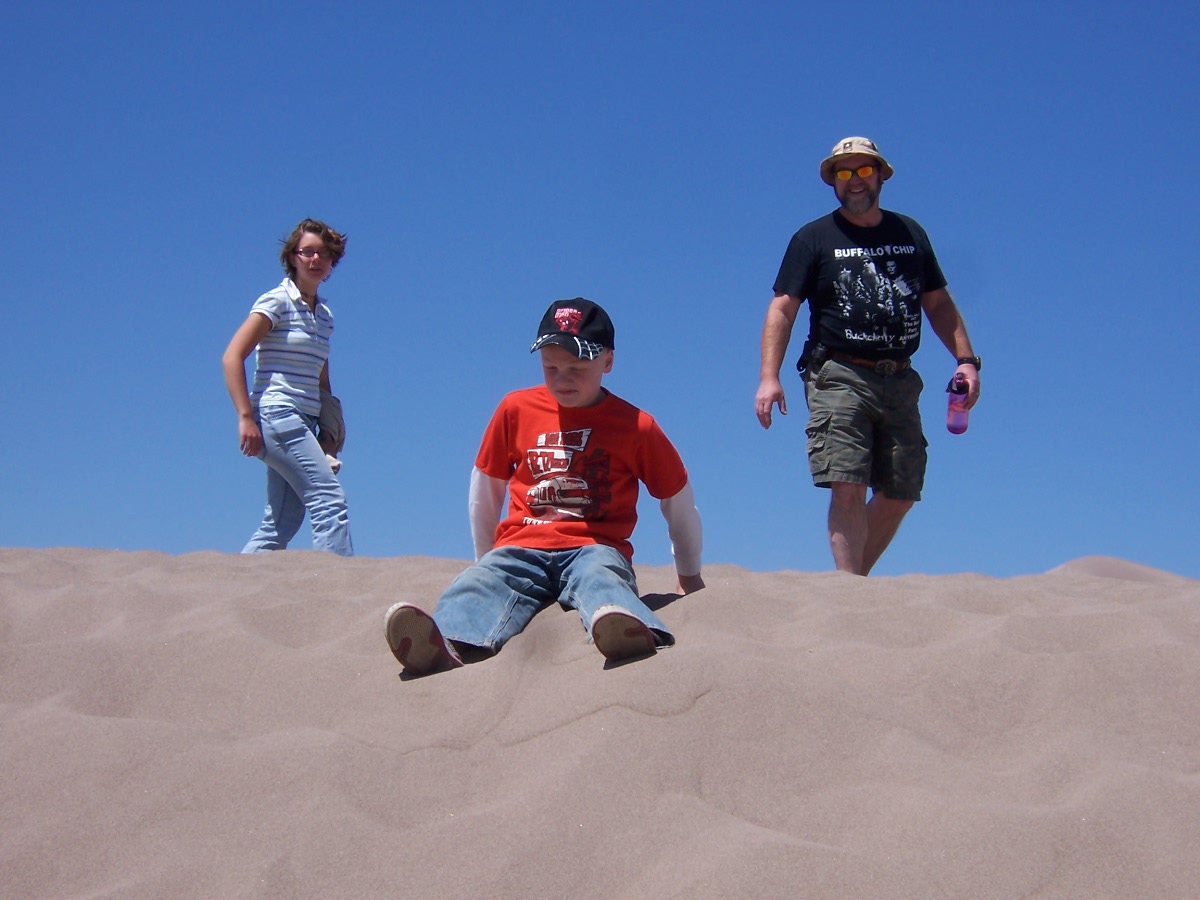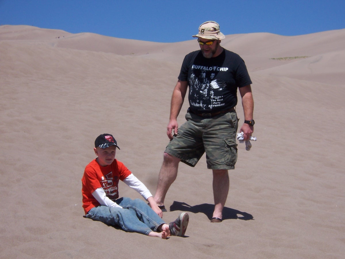 PHOTO PAGE Summer 2009! Dan and Michael came to Colorado for a visit with Mom & Dad. What a great time we had, it was great having them here and getting to see some of what Colorado has to offer with them. Buck Horn restaurant in Denver Michael gives ATV rides to the adults. More rides Todd's new truck (Tweety) A Ride up to Mount Bross & Lincoln. Still lots of snow up there, Aug 8th and Michael is....... Skiing? I don't know? Alpine flowers I don't know? 2 More flowers Michael still mountain climbing and sliding. More sliding and flowers.............................................................. Bristlecone Pine over 1000yrs old Seems like the desert out here, I thought I was a goner! Thanks to Michael I survived ;) Steph and I climb to blessing area and she is blessed. Michael loves the sand dunes. Shoes fill quickly with sand. It's a race through the desert? No, just a place to relax and soak up some sun. Michael seemed to like the sand. Leaving the Great Sand Dunes. Lunch in Alamosa 4 Corners monument. 4 corners near 4 corners Mom & Dad, Mesa Verde National Park. Going through the Balcony House. It was a little tight for Dan. Lucky for him we had oil to lube him up. We drove from Durango to Silverton. Dan & Michael took the train. A stop to look at the Black Canyon of the Gunnison. A stop at the top of Cottonwood Pass on our way to Buna Vista for lunch.
