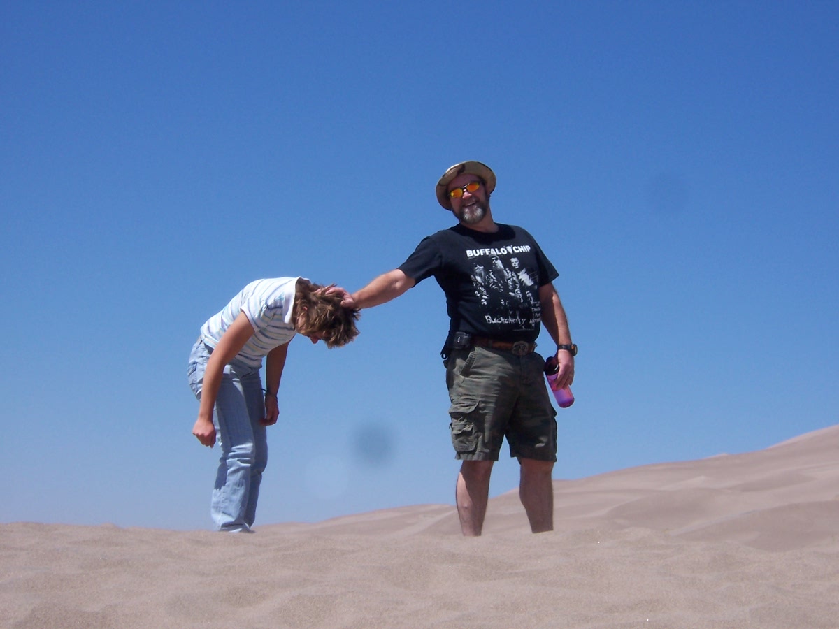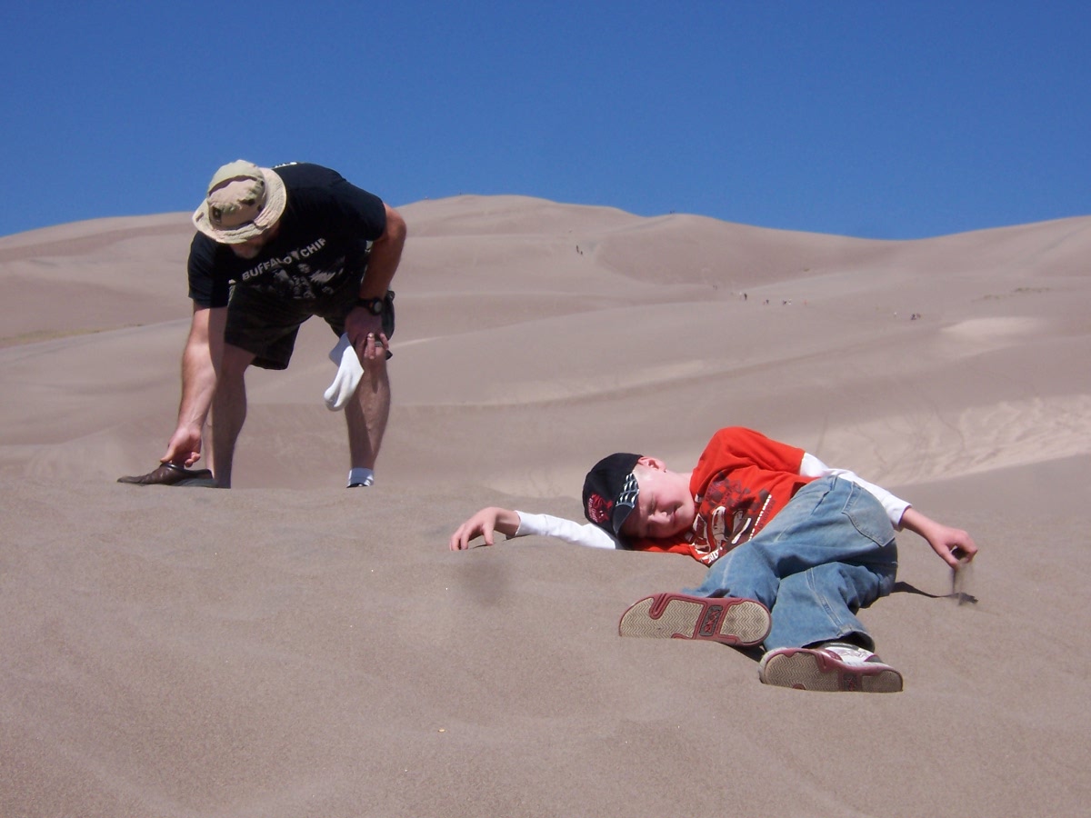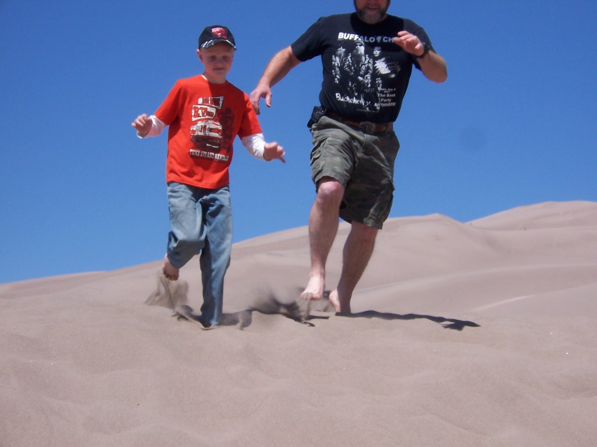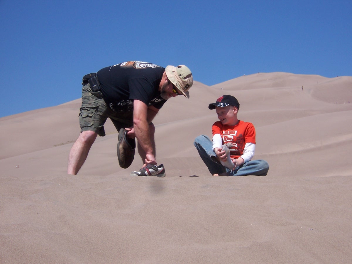 PHOTO PAGE Summer 2009! Dan and Michael came to Colorado for a visit with Mom & Dad. What a great time we had, it was great having them here and getting to see some of what Colorado has to offer with them. Buck Horn restaurant in Denver Michael gives ATV rides to the adults. More rides Todd's new truck (Tweety) A Ride up to Mount Bross & Lincoln. Still lots of snow up there, Aug 8th and Michael is....... Skiing? I don't know? Alpine flowers I don't know? 2 More flowers Michael still mountain climbing and sliding. More sliding and flowers.............................................................. Bristlecone Pine over 1000yrs old Seems like the desert out here, I thought I was a goner! Thanks to Michael I survived ;) Steph and I climb to blessing area and she is blessed. Michael loves the sand dunes. Shoes fill quickly with sand. It's a race through the desert? No, just a place to relax and soak up some sun. Michael seemed to like the sand. Leaving the Great Sand Dunes. Lunch in Alamosa 4 Corners monument. 4 corners near 4 corners Mom & Dad, Mesa Verde National Park. Going through the Balcony House. It was a little tight for Dan. Lucky for him we had oil to lube him up. We drove from Durango to Silverton. Dan & Michael took the train. A stop to look at the Black Canyon of the Gunnison. A stop at the top of Cottonwood Pass on our way to Buna Vista for lunch.
